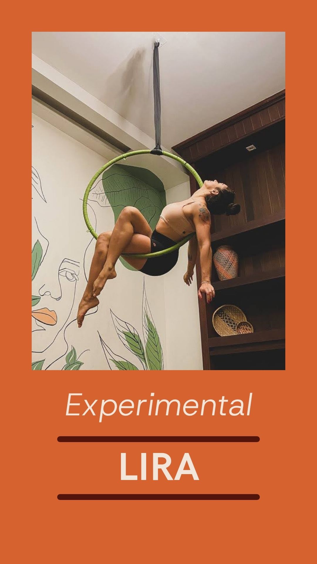 A Lira acrobática é uma modalidade de origem circense, uma variação do trapézio que utiliza um aro de metal suspenso por um cabo, no qual são executados diversos movimentos e até coreografias.